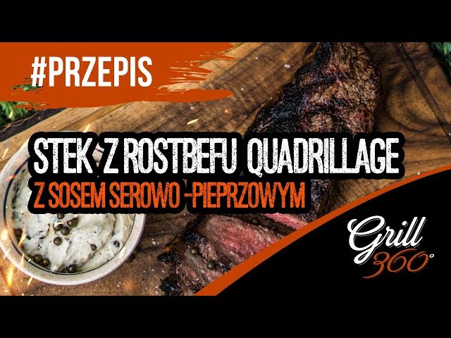Przedstawiamy przepis na stek z rostbefu z sosem na bazie pieprzu i sera z niebieską pleśnią. Stek przygotowujemy klasyczna metodą Quadrillage, która zapewni nam pięknie wyglądające mięso z wzorem kratki. Danie niezwykle proste, a zarazem efektowne, idealne dla każdego fana mięsnych potraw i wyszukanych intensywnych smaków.